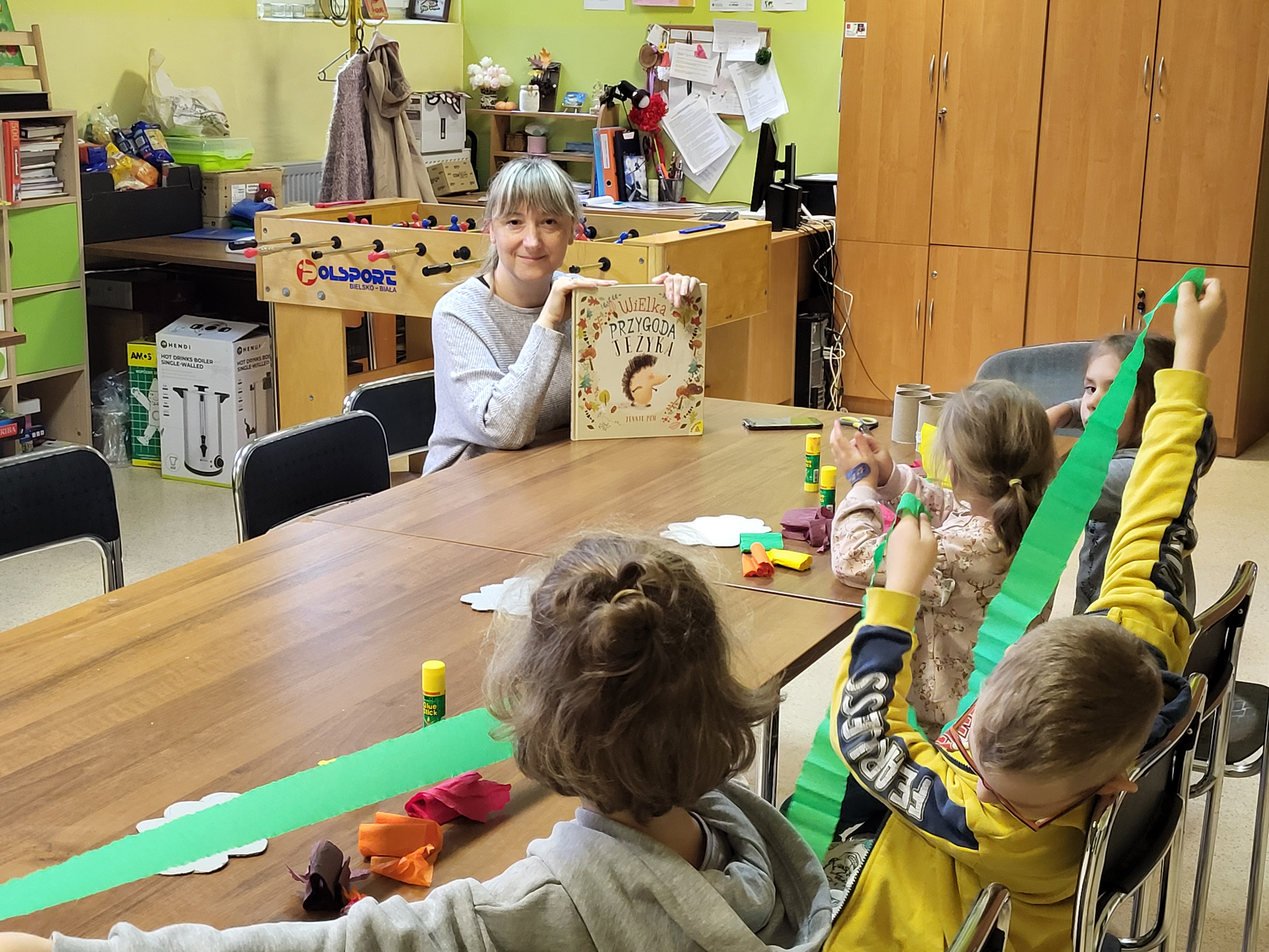 Od października w Filii w Psarach ponownie ruszył Klub Bajkoczytacza. Jesień na dobre zagościła za progiem, a dzieci w ostatnim czasie wykonywały dużo prac jesiennych, zatem nasza koleżanka Sylwia zaproponowała im wysłuchanie bajeczki „Wielka przygoda Jeżyka”, w której dzielny Jeżyk wyrusza na swoją pierwszą, wielką, jesienną przygodę. Ale czy na pewno jest na nią gotowy? Ta pięknie ilustrowana, wzruszająca, ciepła i mądra książka uczy samodzielności i dodaje odwagi przed każdym nowym wyzwaniem.