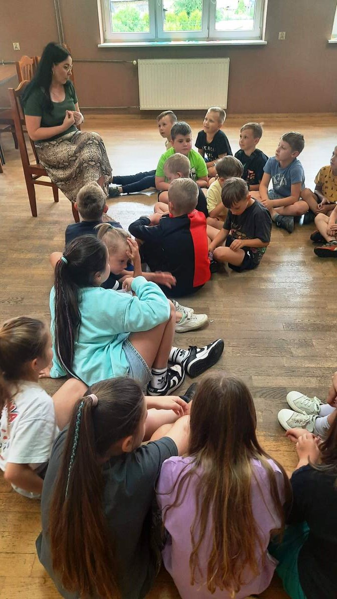 W pierwszym tygodniu wakacji bibliotekarka z Filii w Karniowicach zaproponowała dzieciom, uczęszczającym na półkolonie do Wiejskiego Domu Kultury, zabawę uruchamiającą kreatywne myślenie. Dzieci podzielone zostały na małe grupy, a ich zadaniem było wymyślenie historyjki na podstawie wylosowanych obrazków z piktogramami. Na koniec wszystkie grupy przedstawiły stworzone przez siebie opowiadania, a niektóre z nich były naprawdę zabawne. Dzieciaki poradziły sobie z tym zadaniem doskonale.