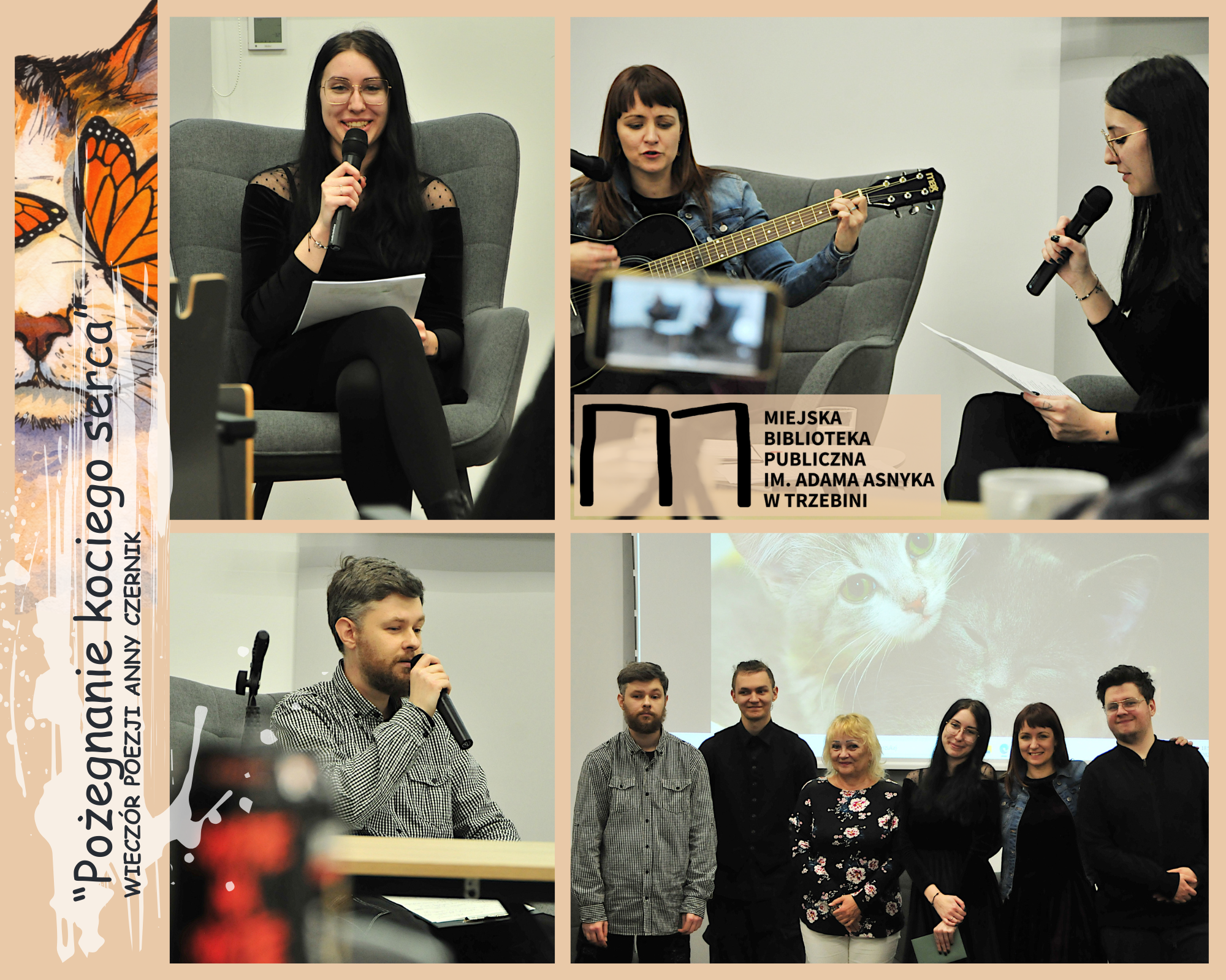 Wczorajszy wieczór poetycki Anny Czernik był czymś więcej, niż tylko spotkaniem z jej twórczością. „Pożegnanie kociego serca” było czasem podsumowań, wspomnień i ciepłych słów, gdyż Artystka – rozpoczynając nowy etap w swoim życiu – żegnała się z Grupą Artystyczną „Nowa TeKa”. Jej utwory wybrzmiały szczególnie mocno, jakby każde słowo niosła ze sobą wdzięczność, wzruszenie i odrobinę tęsknoty. Był śmiech, były momenty zadumy, były też strofy, które zostaną z nami na długo. Wieczór prowadził Konrad Obrok, a muzycznie wsparła Poetkę Kamila Godel-Jędrychowska. Aniu, dziękujemy za wspólny czas, za wrażliwość i obecność. Nowa droga przed Tobą, ale w naszych sercach i pamięci miejsce Twoich wierszy pozostaje niezmienne.