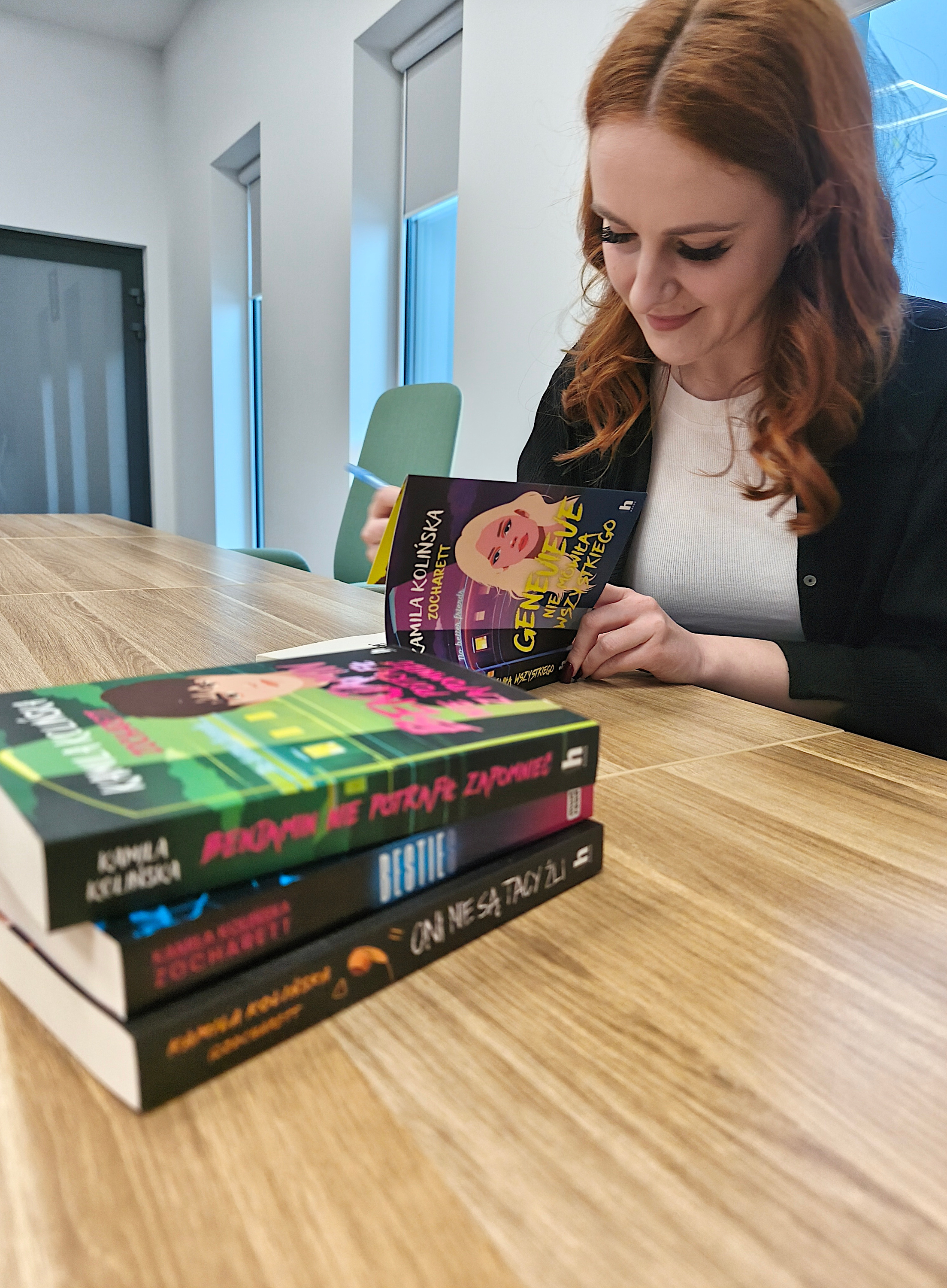 Na luzie i bez spiny, za to z głową pełną tematów do rozmowy, którymi wypełnić można cały dzień. O byciu w social mediach, o kulisach pisania, o tym, jak bardzo redakcja potrafi otworzyć oczy i ile można się z niej nauczyć, o pierwszych krokach na rynku wydawniczym, o przyjaźniach między pisarzami i influencerami, a także o tym, że dobry montażysta to dla internetowego twórcy prawdziwy skarb. A przede wszystkim o literaturze. Te i wiele innych wątków pojawiło się podczas cyklu spotkań z fantastyczną młodą pisarką i twórczynią internetową, Kamilą Kolińską, znaną jako Zocharett. Jej energia i ogromna wiedza zrobiły swoje – tłumnie zgromadzona młodzież nie tylko słuchała, ale też zasypywała swoją idolkę pytaniami, a swobodna atmosfera tak bardzo sprzyjała rozmowie, że czas płynął niemal bez kontroli. Dziękujemy za rewelacyjne spotkania!