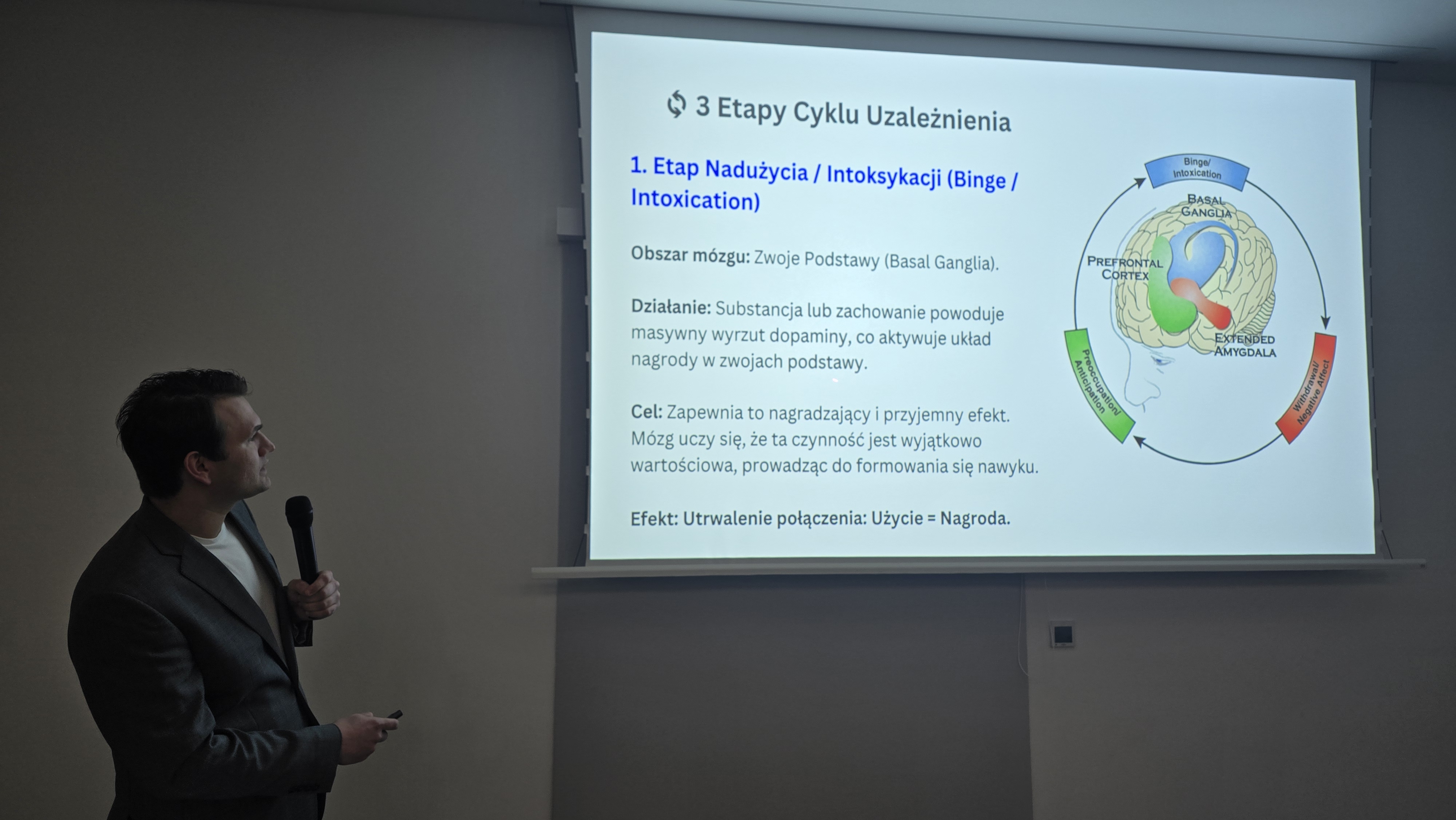 Co się dzieje z ludzkim mózgiem w różnych fazach uzależnienia? Czy uzależnienie dotyczy jedynie substancji? Jak traumatyczne doświadczenia mogą stać się jednym z głównych czynników prowadzących do uzależnień? Skąd wiemy, że jakieś zachowanie jest uzależnieniem i jak odróżnić uzależnienie od zależności i nadużycia? I przede wszystkim – jakie są drogi pomocy? Na te i inne pytania odpowiedział zebranym słuchaczom Klubu Zdrowia Mariusz Merkis podczas swojej prelekcji „Uzależnienia – neurobiologia, mechanizmy działania i realne wsparcie”. Dziękujemy za kolejną ogromną porcję wartościowej wiedzy.