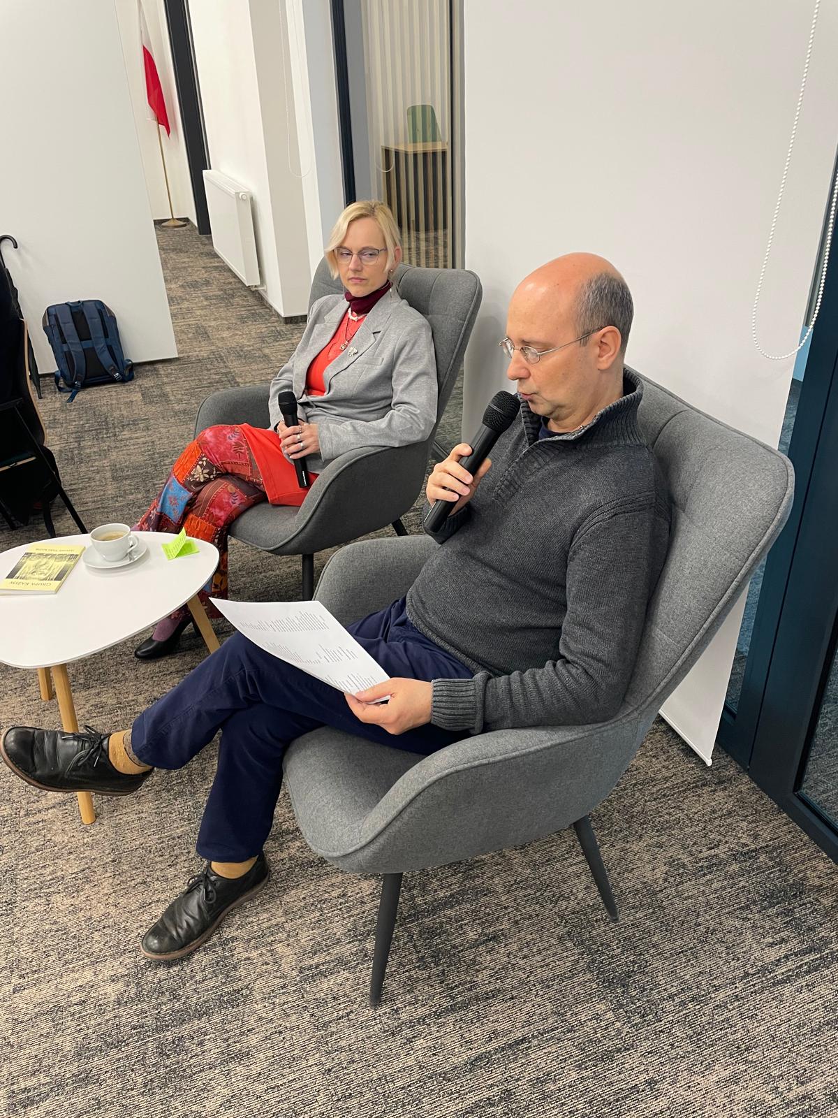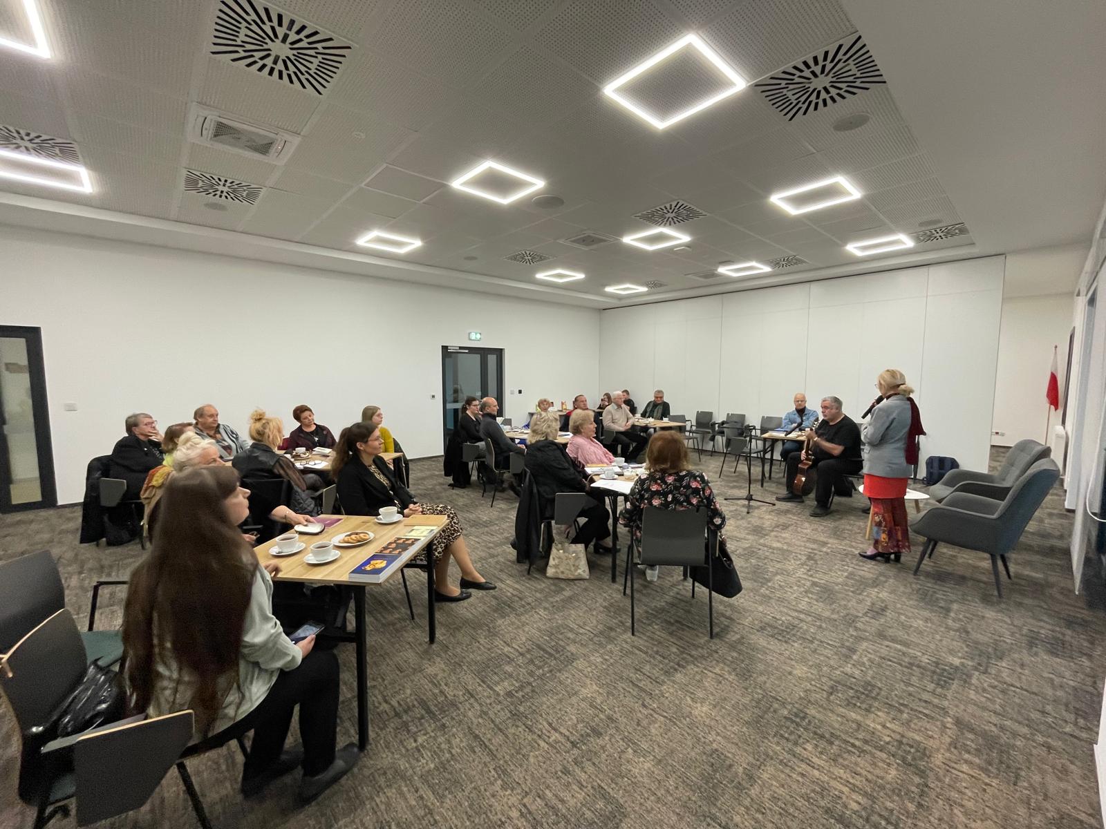 W poniedziałkowy wieczór w Manufakturze mieliśmy przyjemność gościć Krakowską Grupę Literacką „Każdy”, która zaprosiła publiczność i wszystkich miłośników poezji na „Rozmowę wierszami”. Kierująca grupą, a zarazem prowadząca spotkanie Aneta Kielan-Pietrzyk pięknie i z nutami nostalgii przeprowadziła słuchaczy przez trzy dekady istnienia grupy, zapraszając kolejnych twórców do prezentowania swoich wierszy. Wsłuchani w wersy pełne uczuć, głębokich przemyśleń, niejednokrotnie zabawne, a czasami całkiem dziwne – spędziliśmy przemiły wieczór połączeni miłością do poezji. Muzyczne akcenty zapewnił Robert Marcinkowski. Dziękujemy za wieczór pełen wrażeń.